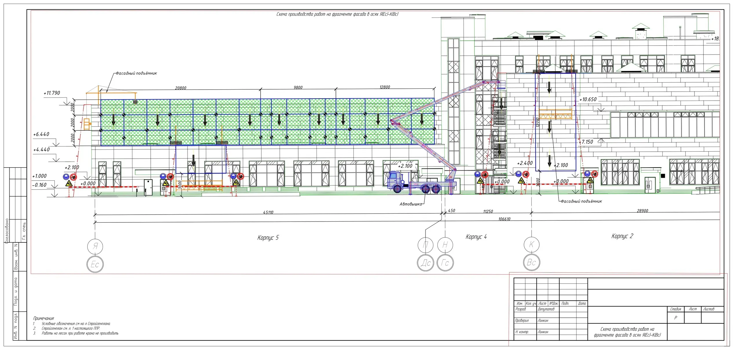 В ППР на фасадные работы указаны следующие пункты: