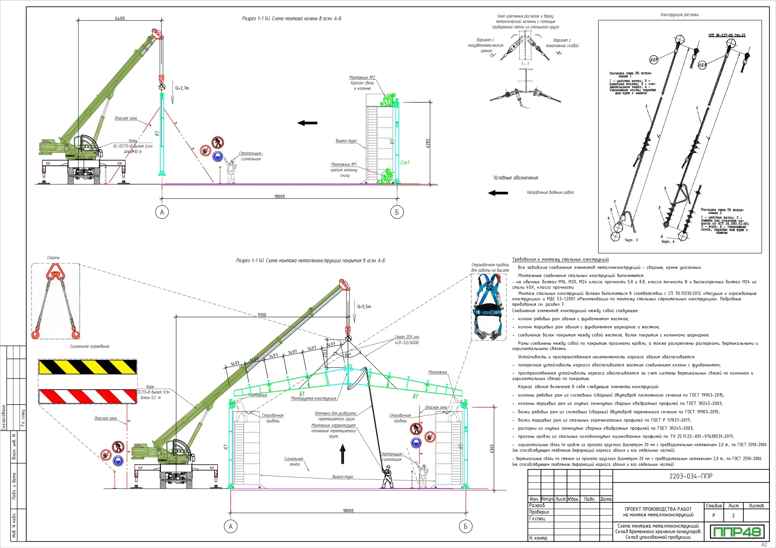 Сотрудниками компании ППР48 разработан ППР на монтаж металлоконструкций с использованием автомобильных кранов и коленчатых подъемников.