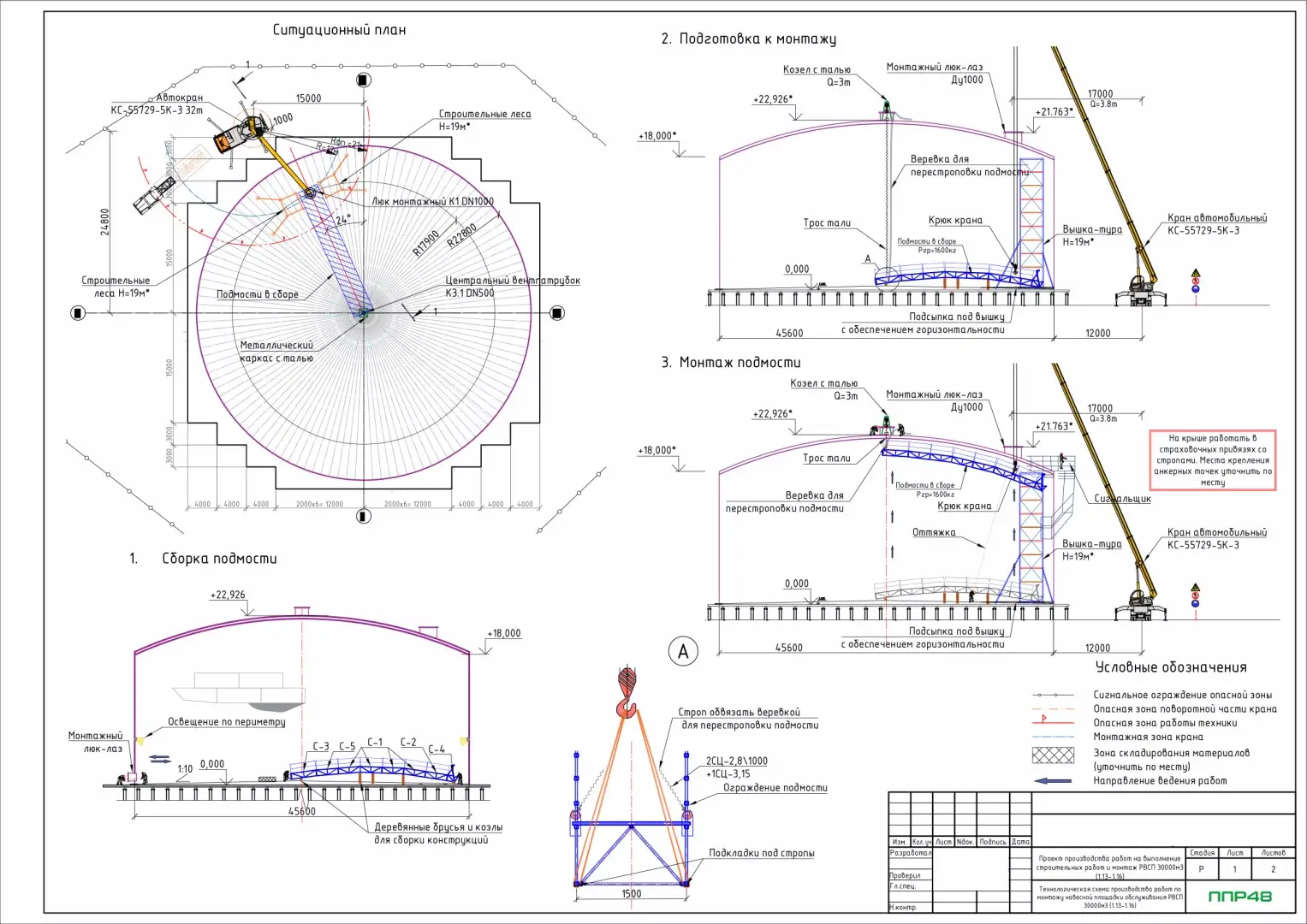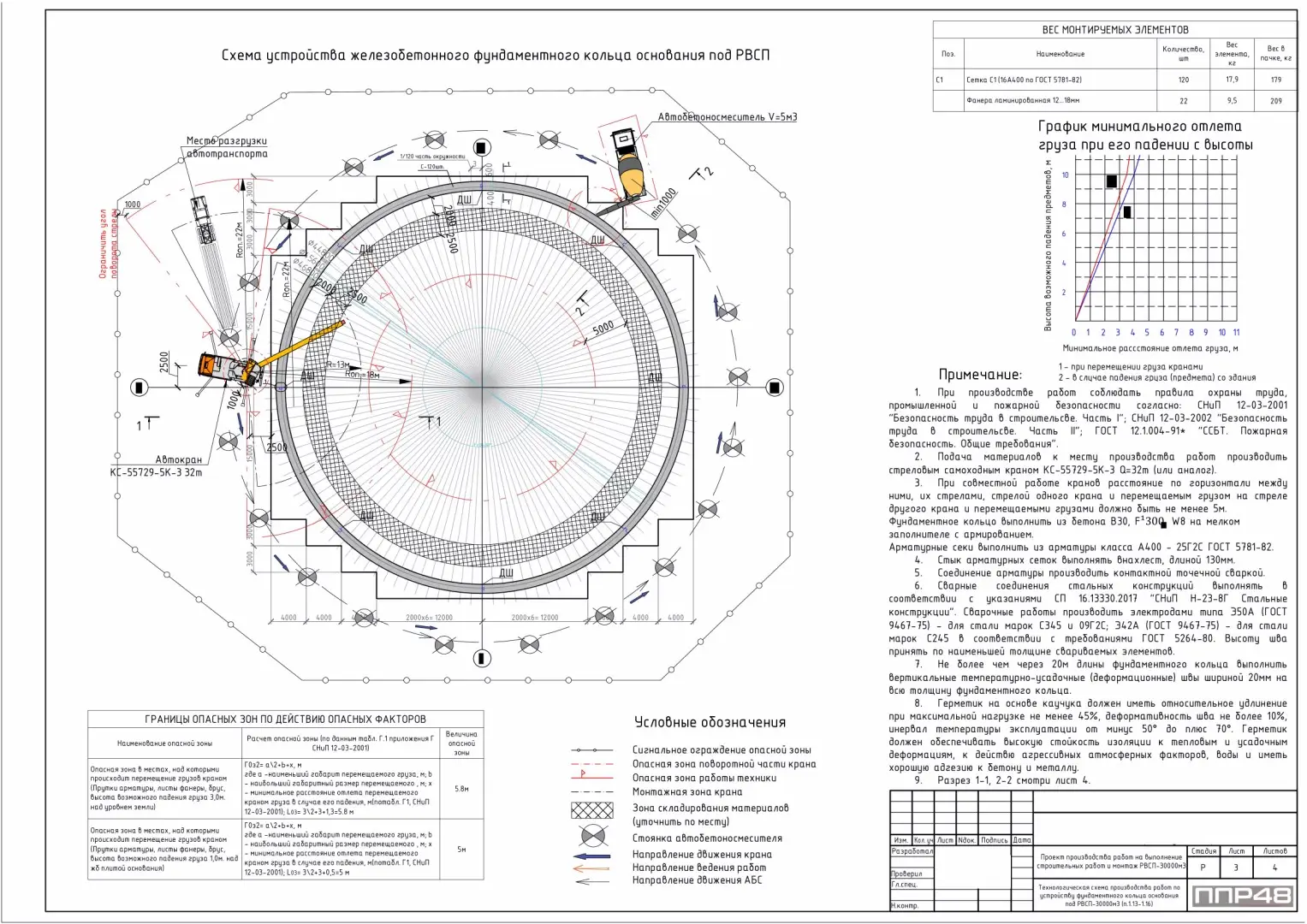 Для целей установки грузоподъемных машин, организации и выполнения строительно-монтажных работ с их применением должен быть разработан проект производства работ грузоподъемными кранами (ППРк). Разработка, согласование и утверждение ППРк должны осуществляться в соответствии с РД-11-06 0.