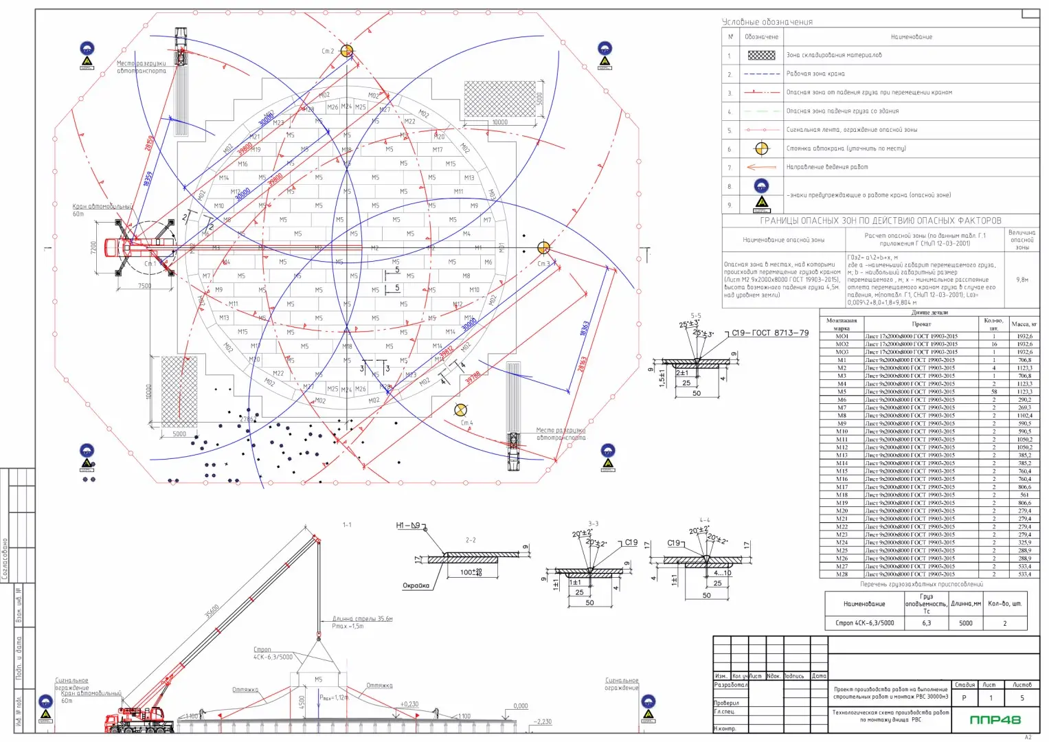 - Схемы строповки грузов и конструкций. Схемы складирования (при необходимости)