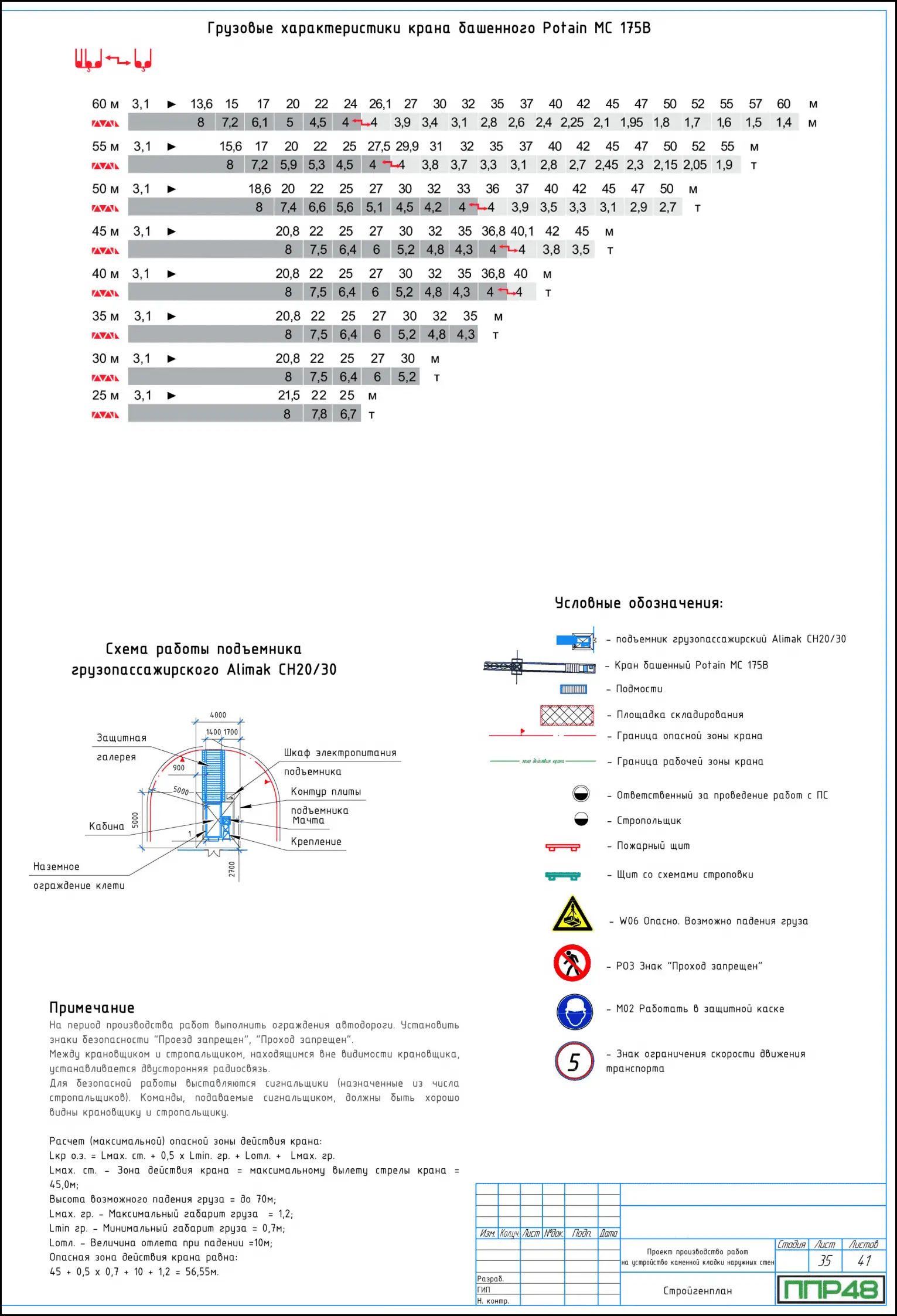 - указания мест расположения техники, грузоподъемного оборудования;