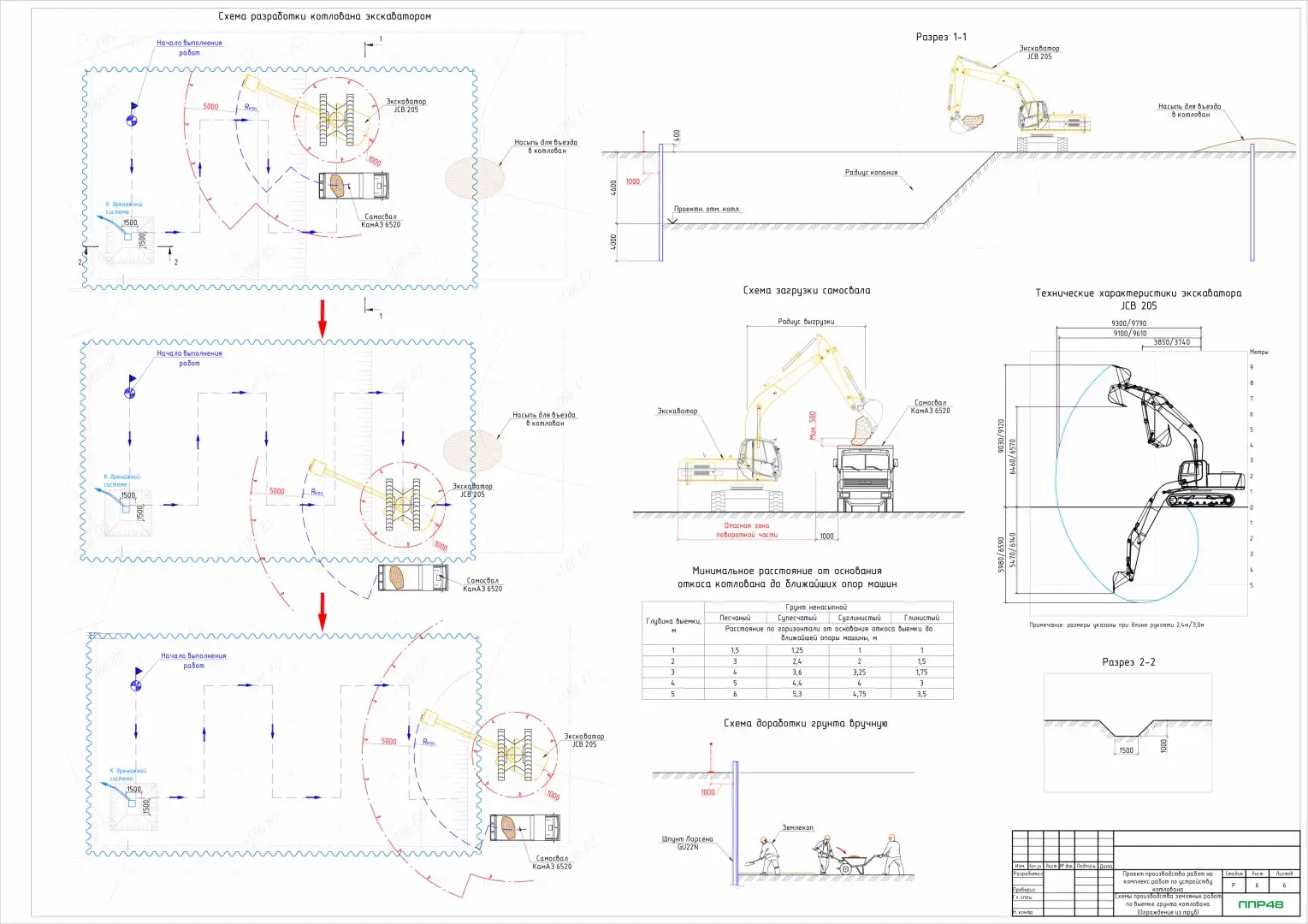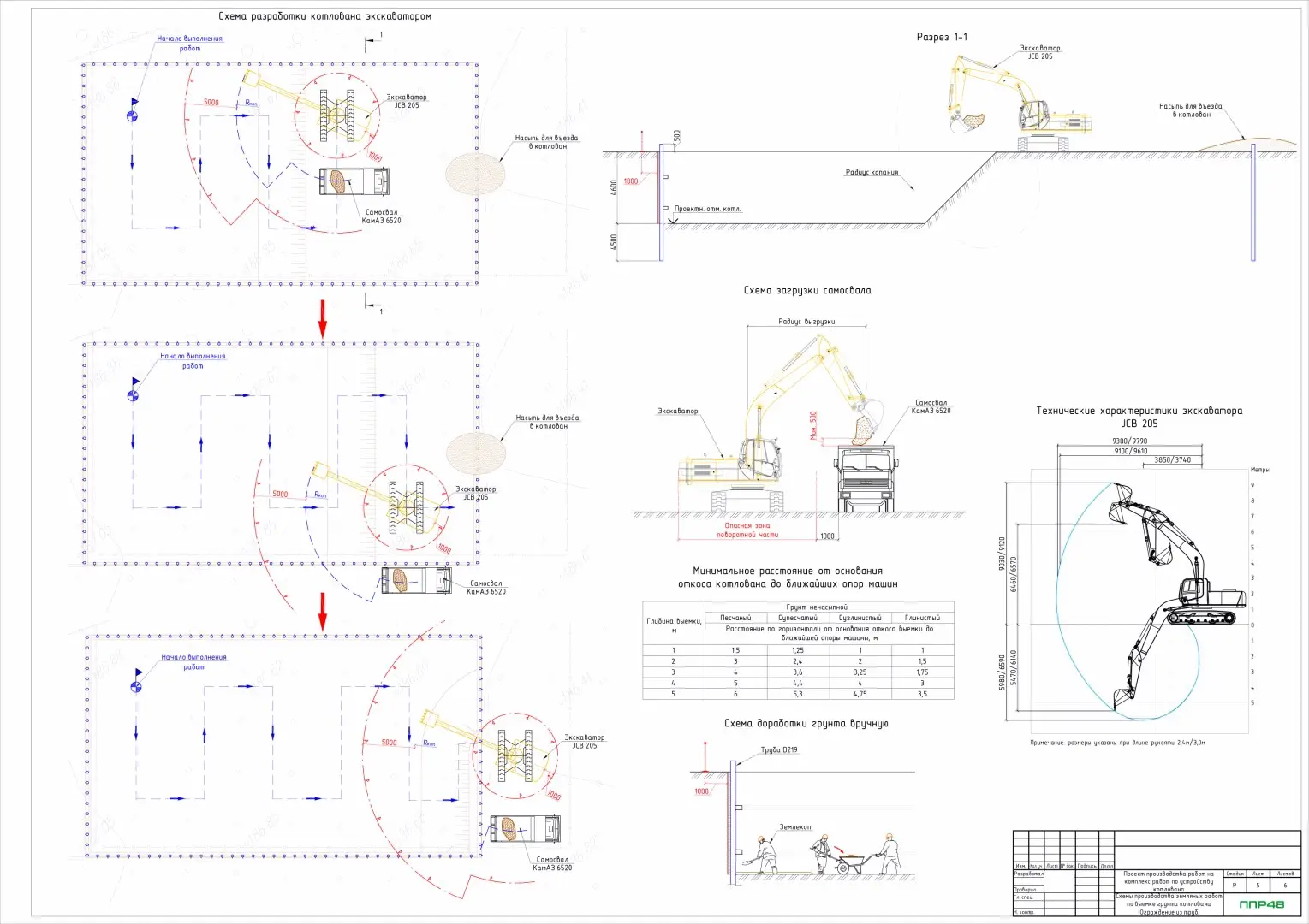 ППР на разработку котлована экскаватором