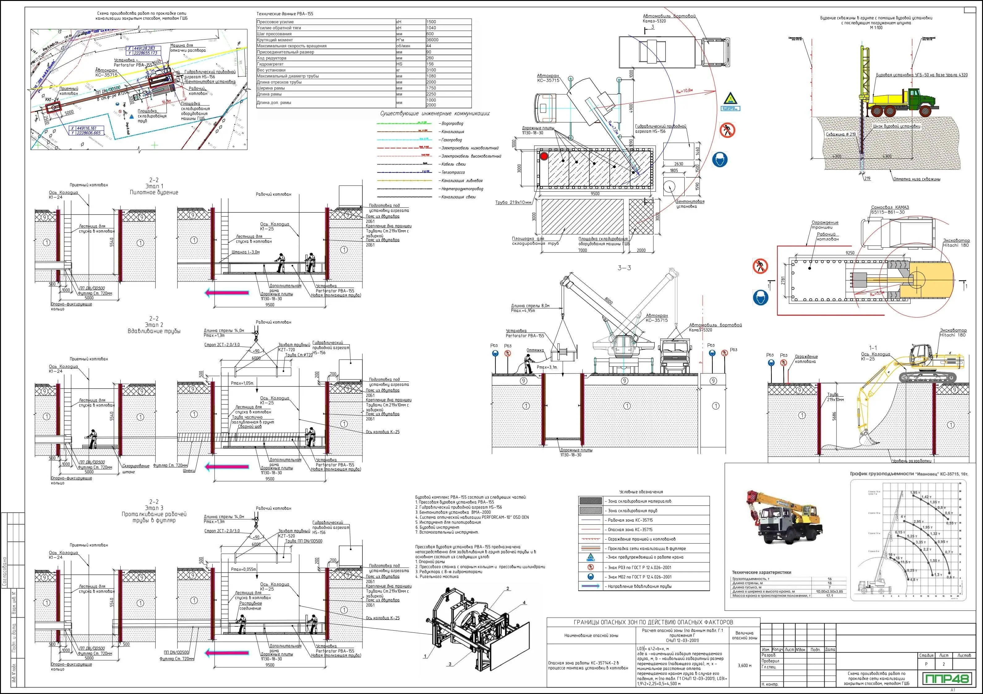 Разработка ППР для внутренних и внешних сетей имеет ряд существенных различий. Это обусловлено тем, что при устройстве наружных сетей, строительные организации используют крупногабаритную технику, схемы движения которой необходимо отражать в графической части проекта. В проектах на внутренние инженерные сети такая техника используется намного реже, поэтому графическая часть требует минимальных решений.