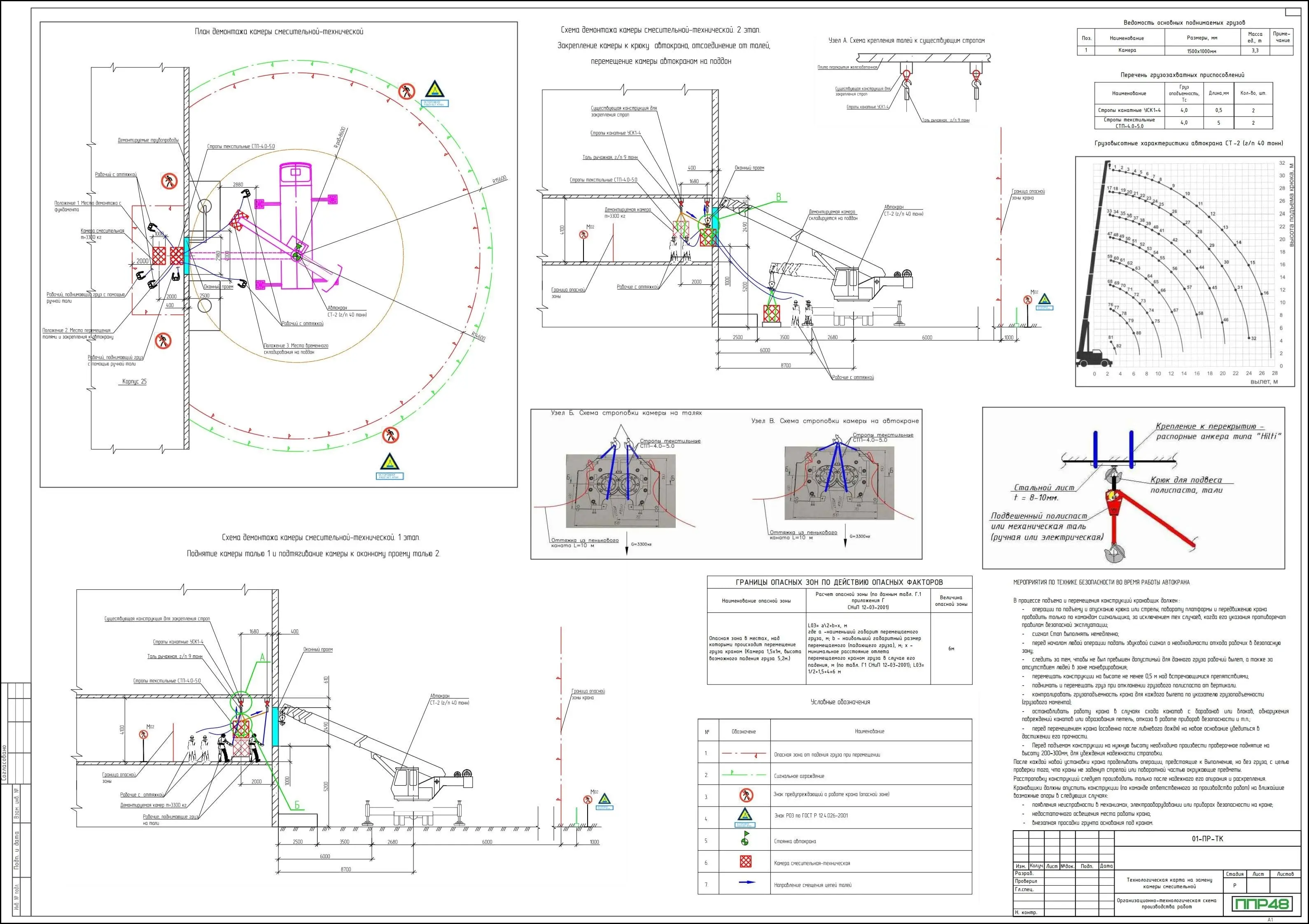 - схемы установки грузоподъемной техники;